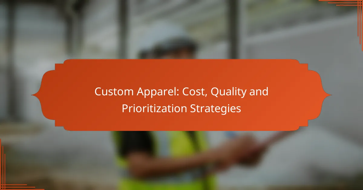 Effective prioritization strategies for custom apparel focus on understanding audience needs, managing costs while ensuring quality, and adhering to production timelines. By aligning these elements, businesses can create appealing products that meet market demands efficiently.
